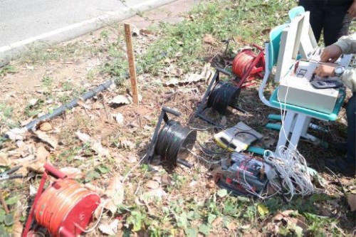 Linhas de geofísica foram locadas mediante o auxilio de 04 auxiliares de campo.