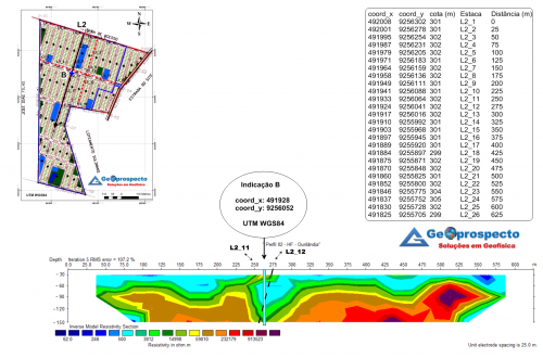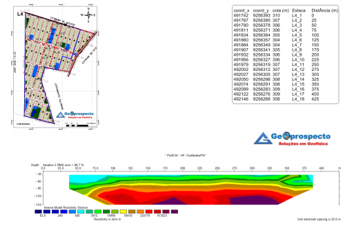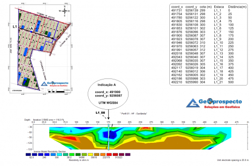 no período de 08 a 11 de outubro de 2013, por solicitação da HF ENGENHARIA, campanha de estudo geofísico através da caracterização geoelétrica dos materiais